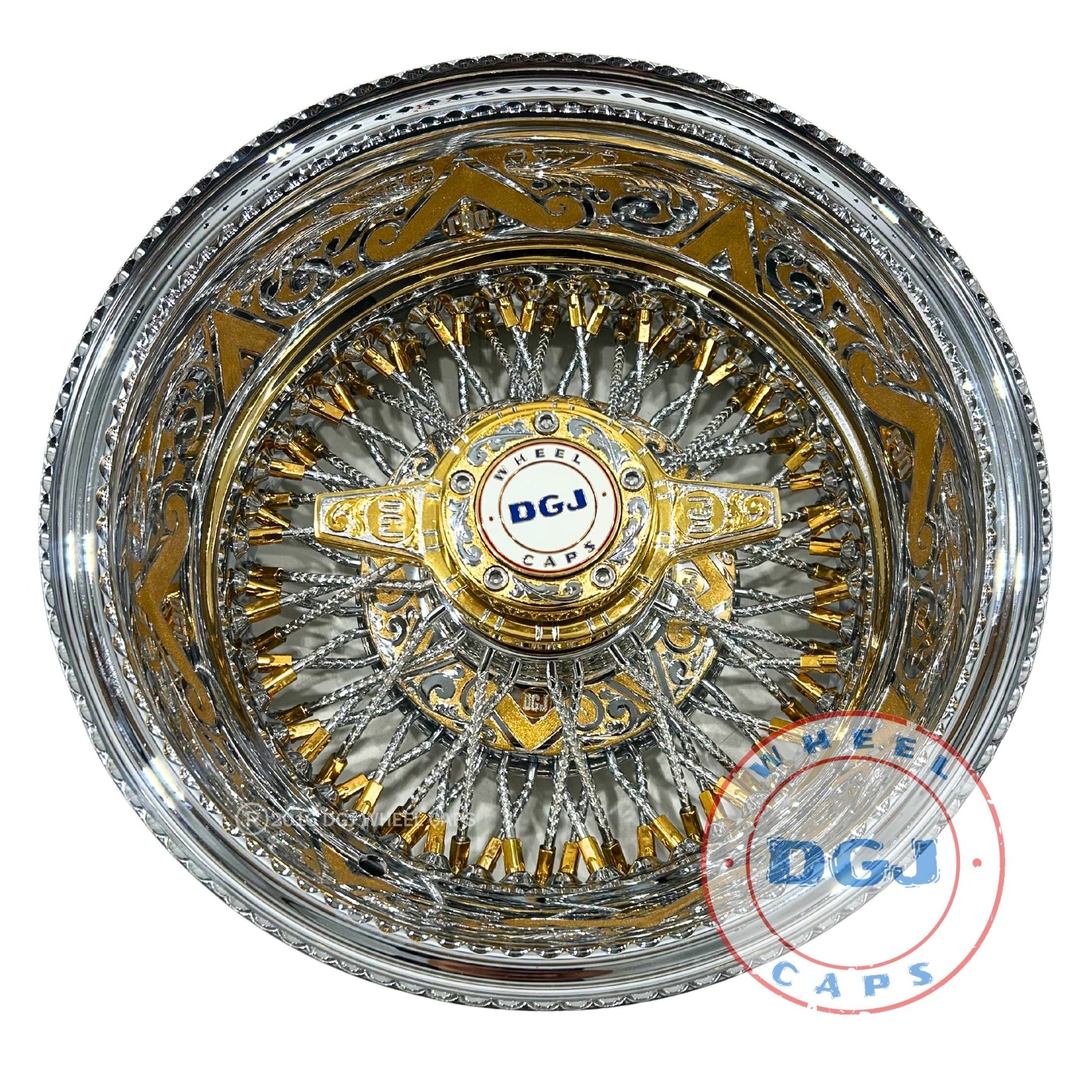 4- DGJ WHEEL CAPS 14x7 Engraved Two Tone Lowrider Wire Wheel Rims